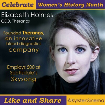 RT our graphic w/Elizabeth Holmes, founder & CEO of @theranos, which employs 500 in #AZ09! #WomensHistoryMonth