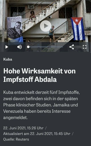 Kuba entwickelt 5 Impfstoffe. Der eine ist wirksamer als AstraZeneca und der Andere, #Abdala, ist ungefähr gleich wirksam (92%) wie Pfizer und Moderna.