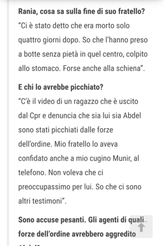 "C’è il video di un ragazzo uscito dal Cpr e denuncia che sia lui sia Abdel sono stati picchiati dalle forze dell’ordine. Mio fratello lo aveva confidato anche a mio cugino Munir. So che ci sono altri testimoni”. Testimoni che intanto hanno deportato o trasferito