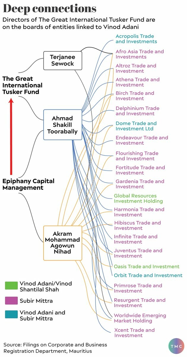 @MorningContext peered through company filings in Mauritius. We found that 13 Mauritian funds invested in Adani Enterprisesā Rs 20,000 crore. Of these, six funds have common directors with links to the Adani group