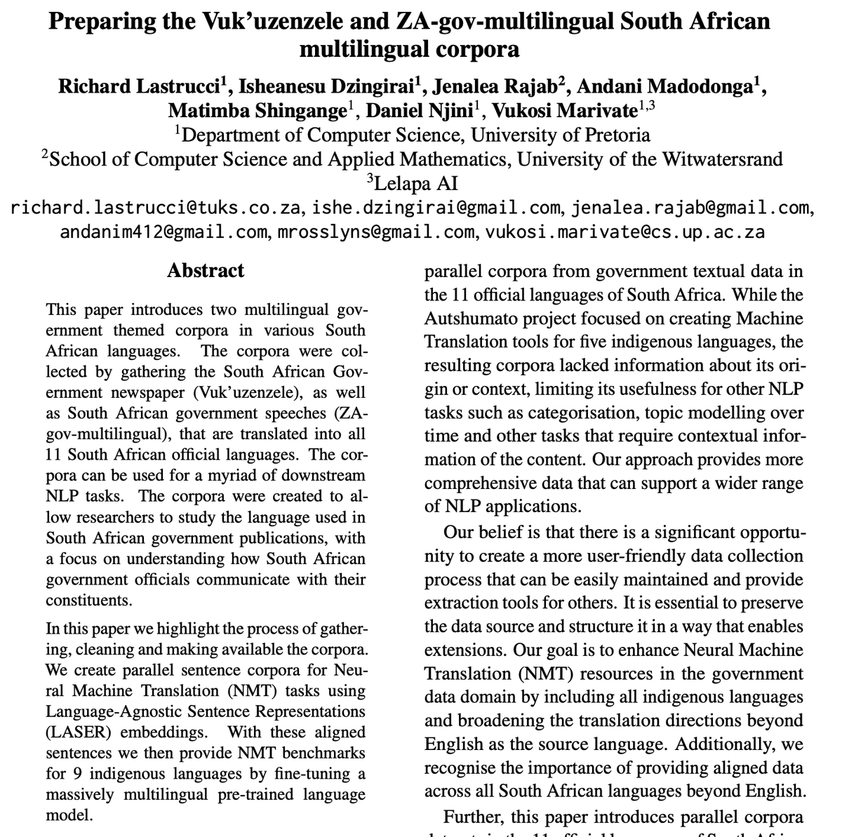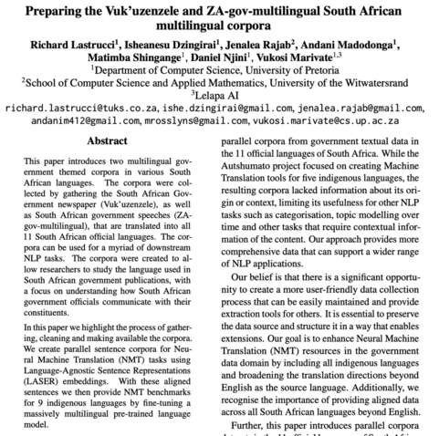 Preprint is out: "Preparing the Vuk’uzenzele and ZA-gov-multilingual South African