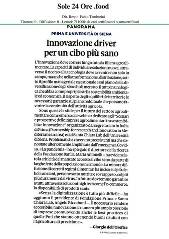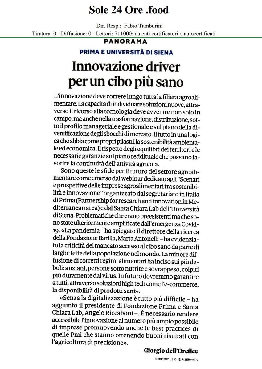 L’#Innovazione e la digitalizzazione in particolare centrali per futuro #agrifood e per giusti redditi ad agricoltori. Se ne è discussso nel webinar ‘Scenari e prospettive delle imprese agrifood fra #sostenibilità e innovazione". Ne parla oggi #GiorgioDellOrefice su @sole24ore