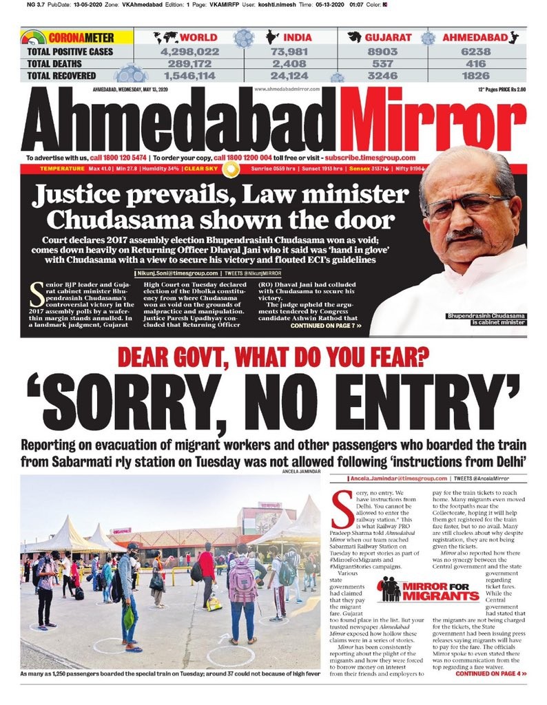 We are proud that we @ahmedabadmirror@twitter.com exposed how migrants in #Gujarat had to pay money for their tickets, sometimes much more than the specified price.
