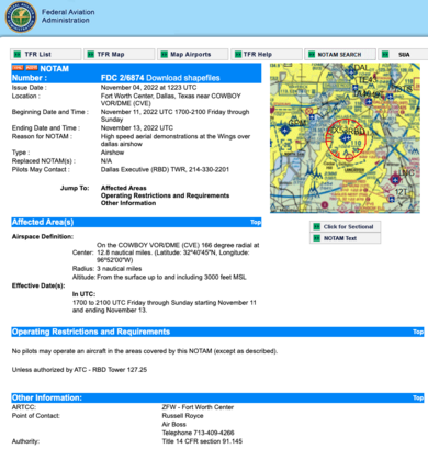 Finally, I’ve attached a screen shot of the NOTAM for the show.