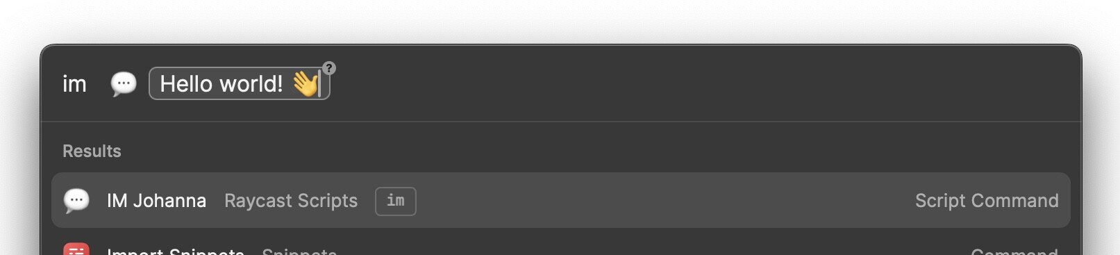 Made a #Raycast script command to IM a specific person (like your partner), ported from #AlfredApp where I’ve used it all the time.