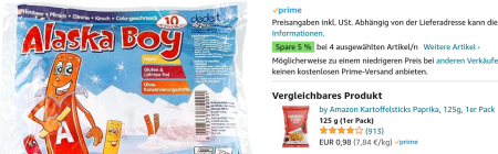 Ach ja, nette #Algorithmen... #Amazon, "Alaska Boy Icesticks" kriegt von Amazon ein "Vergleichbares Produkt" drangeklatscht .... "by Amazon Kartoffelsticks Paprika".