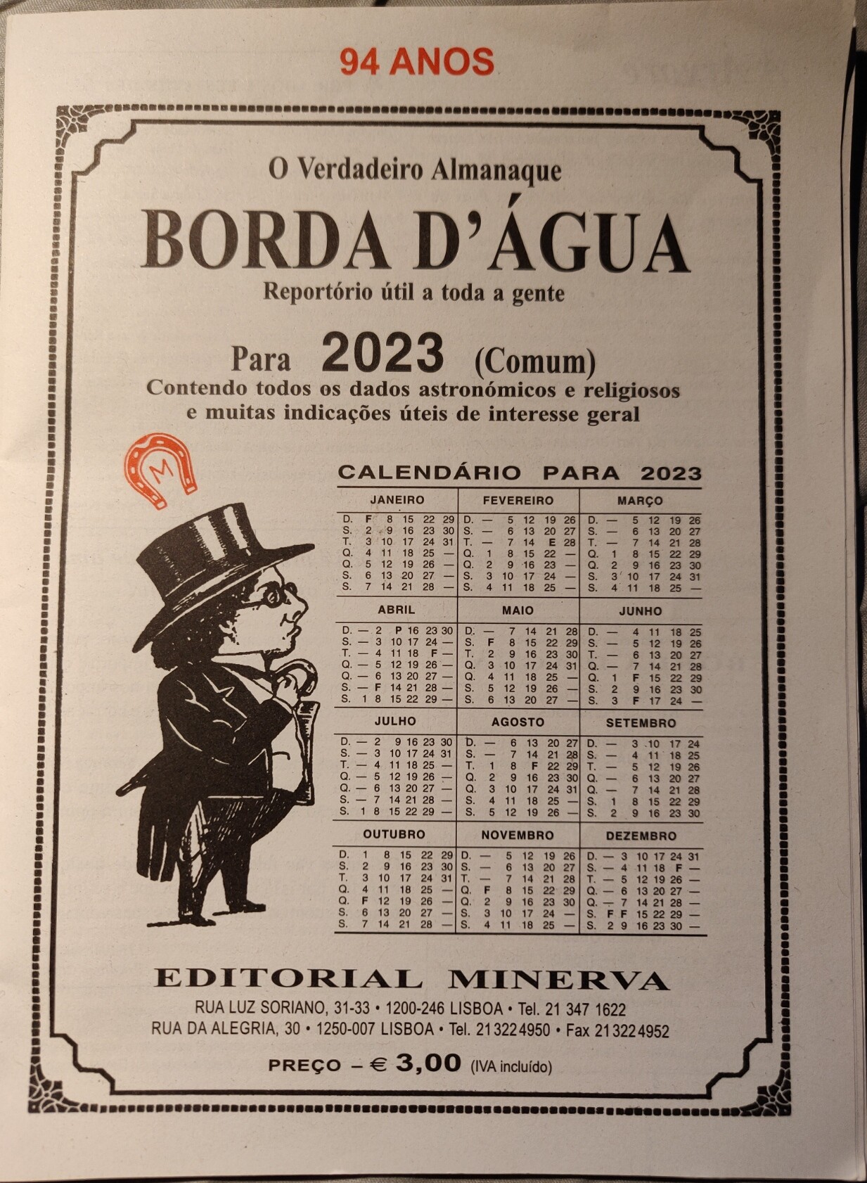 Janeiro, Almanaque Borda d'Água 2023 #Gener #Untarrila #Xaneiro #Enero #almanach