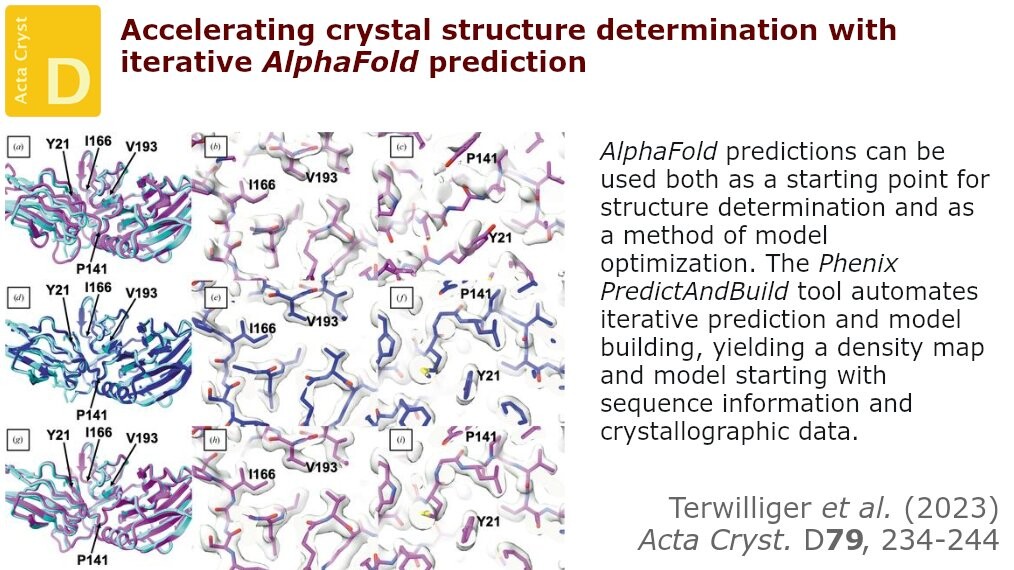 An iterative template-guided prediction procedure that uses AlphaFold predictions to produce an electron-density map and a structural model using only sequence information and crystallographic data #AlphaFold #AI #AutomatedStructureDetermination https://doi.org/10.1107/S205979832300102X