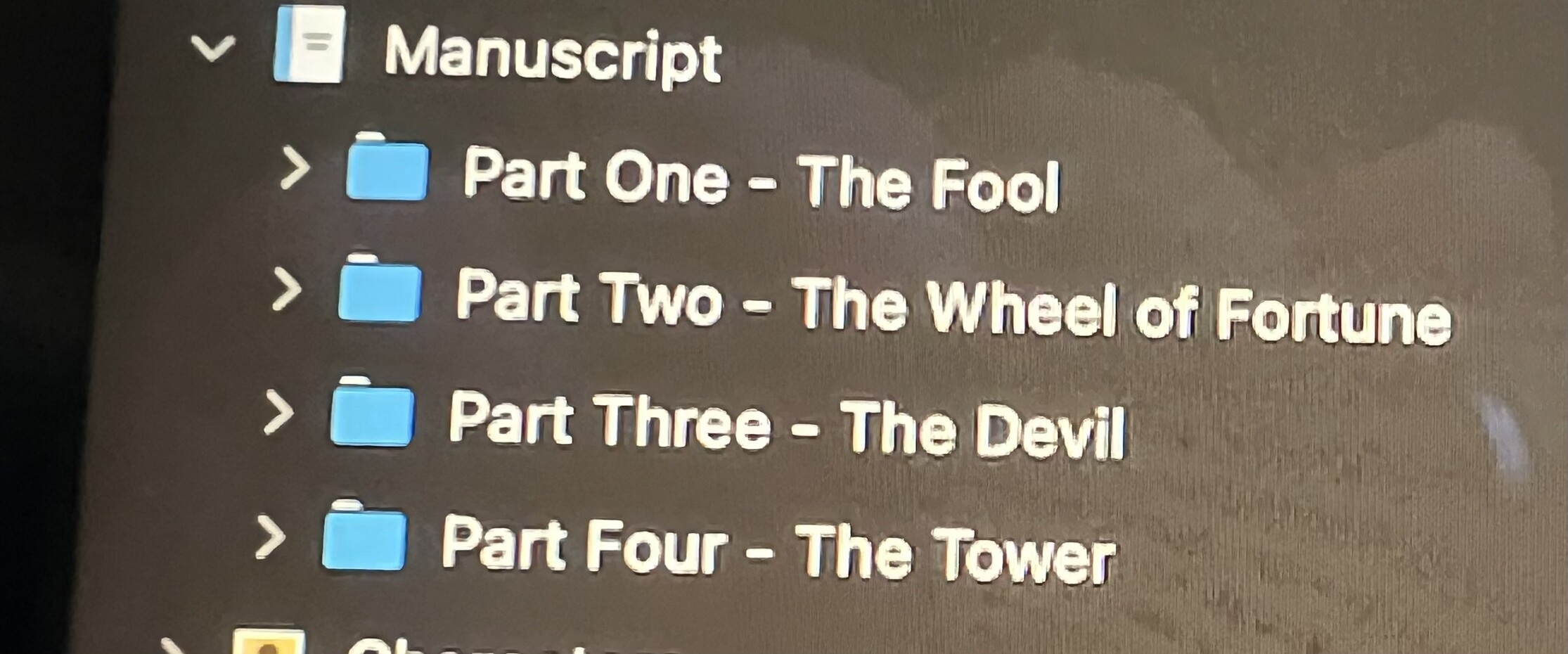 Reorganized and broke my WIP up into sections and I feel good about it. Now I just gotta figure out how the Tarot theme fits into the story. I chose those cards for their meanings, but I feel like I might use them as kind of story-prompts. Speaking of which, I need to do my writingwonders for today.