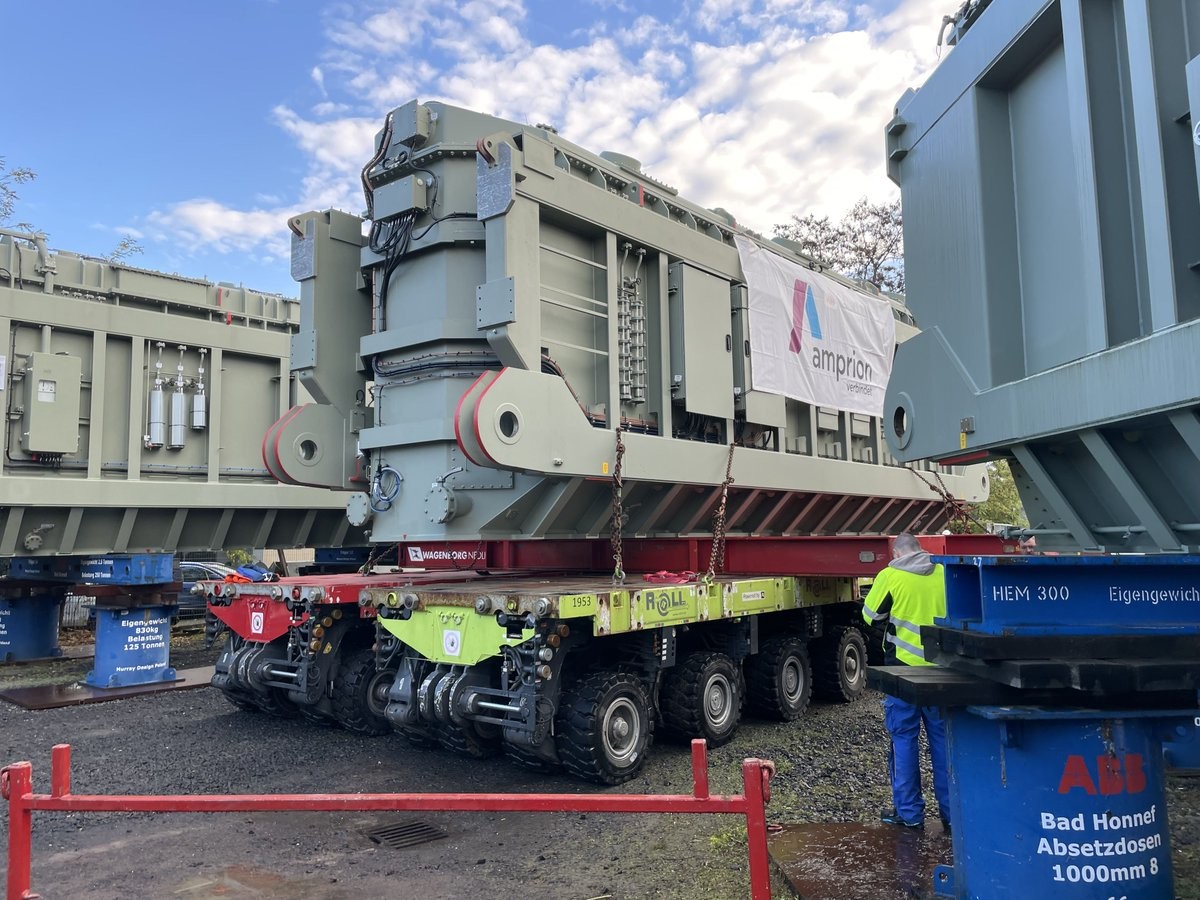 Die #Amprion-Umspannanlage Oberzier (NRW) hat zwei neue #Phasenschieber bekommen. Wir haben einen davon auf seiner Reise vom Hersteller in Bad Honnef zum Einsatzort begleitet. Ein #Thread: /1