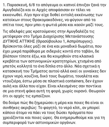 Ενημέρωση σχετικά με τους έγκλειστους στην Αμυγδαλέζα από το @MigrantsSoli@twitter.com .