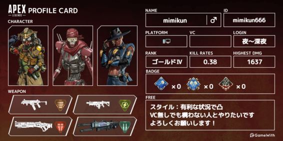 #APEX女子 #Apex募集ps4 #Apex募集 #APEX自己紹介カード #apex
