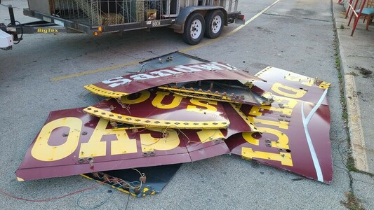 "The buyer, Joseph Rieland, who works for a medical device company on liver and kidney transplants, also owns Redefined & Co., which makes industrial-style tables. That creative work, he says, led him to his, passion rescuing, refurbishing and restoring vintage signage."