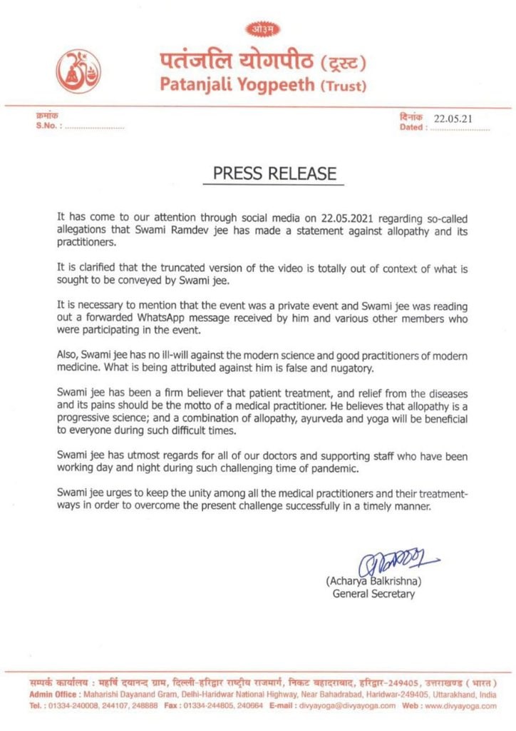 Patanjali apologised for the stupidities of Ramdev & also said that they respect doctors. Do we forgive quack Ramdev? He is the reason behind deaths of thousands of people who refrained modern medicine & consumed his defaulter products for covid19.