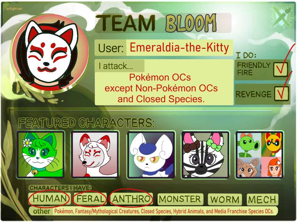 Hehe, I got an #ArtFight2022 Application. I'm #TeamBloom! OH JOY OH JOY!!!!! IT'S STARTING ON JULY 1ST!