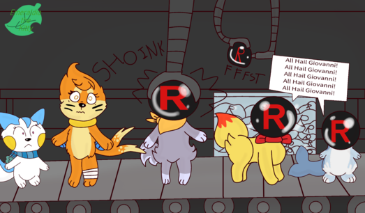 Team Rocket Inflatable Ballhood Artfight attack for Off-Site BubbleIce720. Snatch all the Pokemons, Pokefusions, and Fakemons sending to Team Rocket Inflatable Ballhood Factory turn 'em into Combatants. #Artfight2022 😈