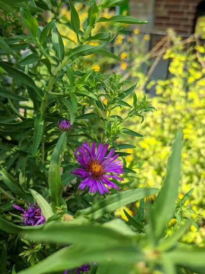 My Symphyotrichum novae-angliae, new england aster, popped out a few flowers far ahead of schedule. I'm not complaining at all!