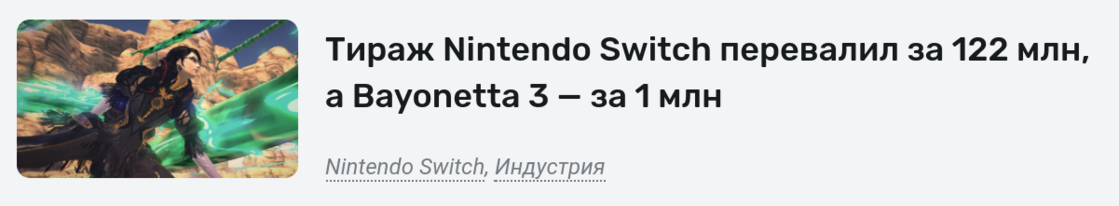 «Тираж Nintendo Switch Перевалил за 122 млн, а Bayonetta 3 — за 1 млн»