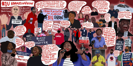 Solidarity with Amazon workers! Hi-res graphic by Aaron Hughes available here: https://justseeds.org/graphic/solidarity-with-alabama-amazon-workers/ #bamazonunion #AmazonUnions #PROAct