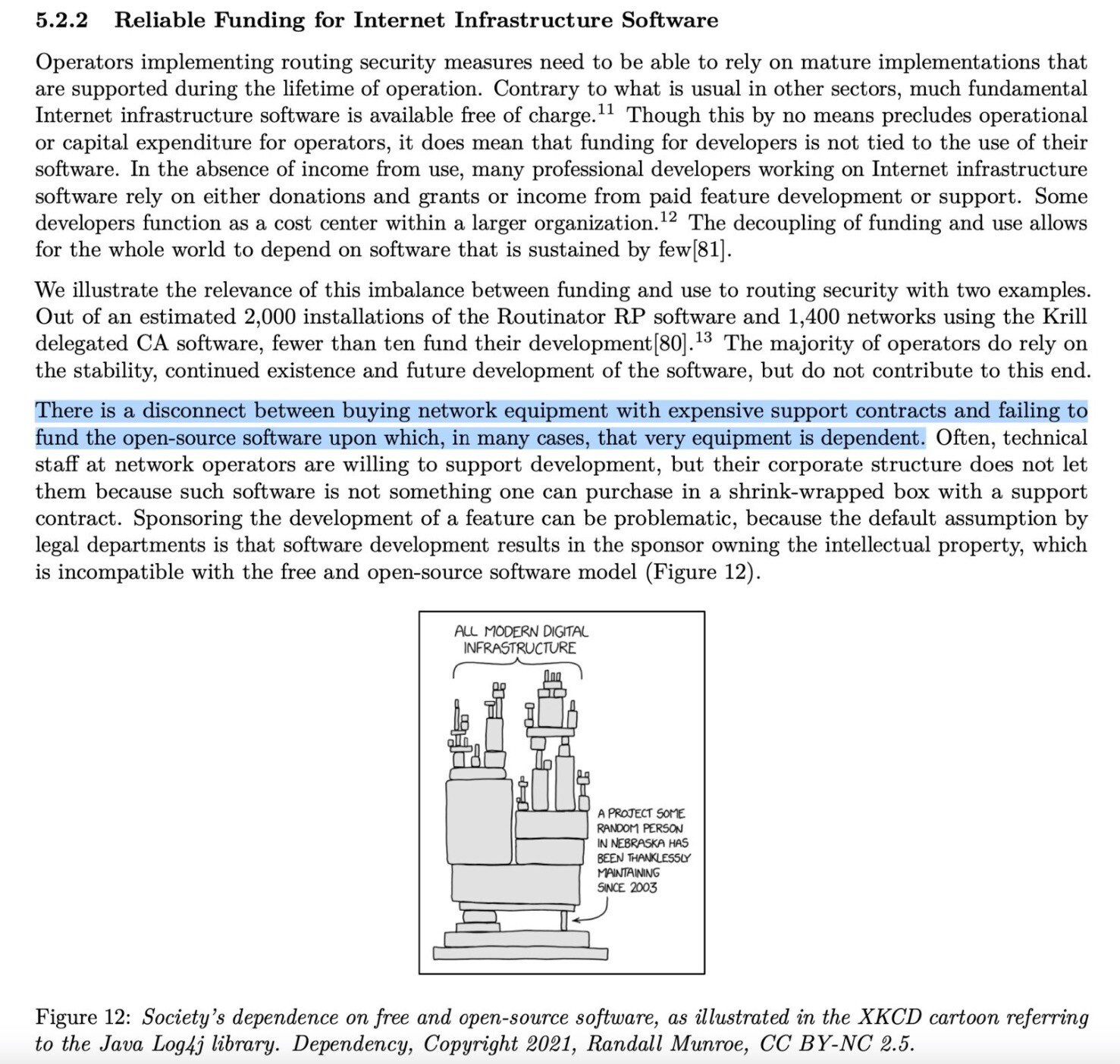 The latest #BITAG report covering “Security of the Internet’s Routing Infrastructure” makes an important point about reliable funding for Internet infrastructure software. https://www.bitag.org/Routing_Security.php #OpenSource #RPKI #BGP #RoutingSecurity #MANRS #XKCD #IETF #IETF115