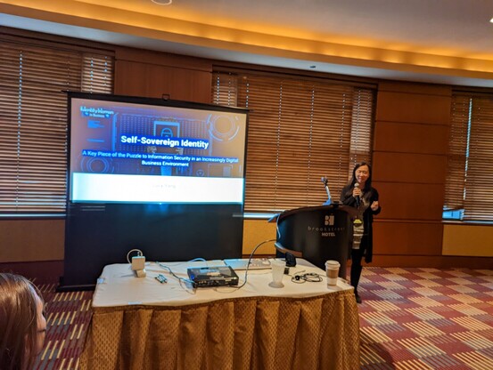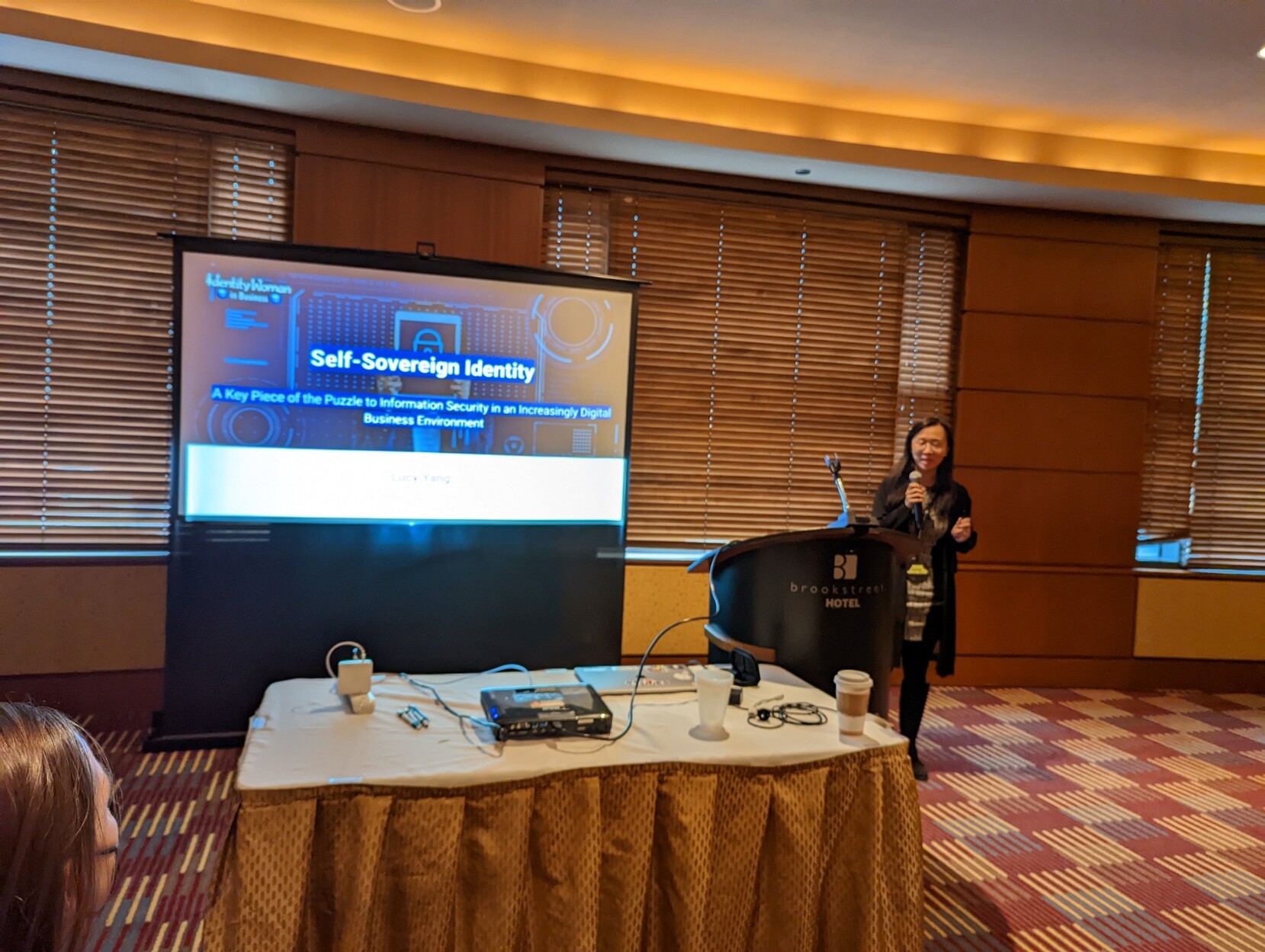 Now @LucyYQX is speaking at the @OWASP_Ottawa stage at #BsidesOttawa about Self Sovereign Identity!