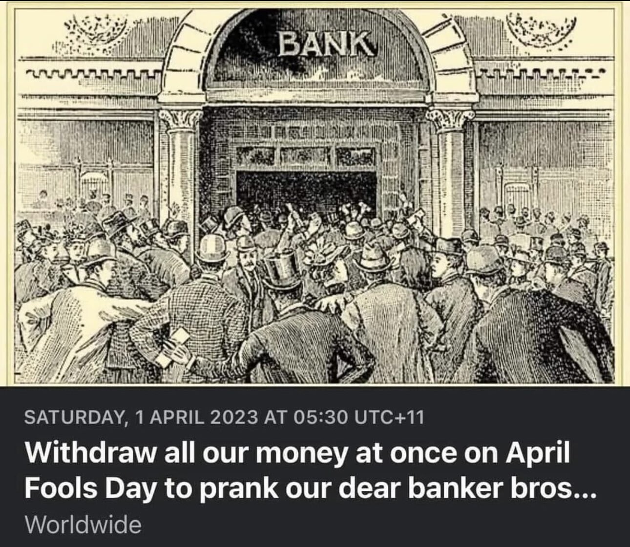 No #bankrun yet - didn't see any lines at banks in Keene this morning. You may have time to beat the crowds if you get your money out today.