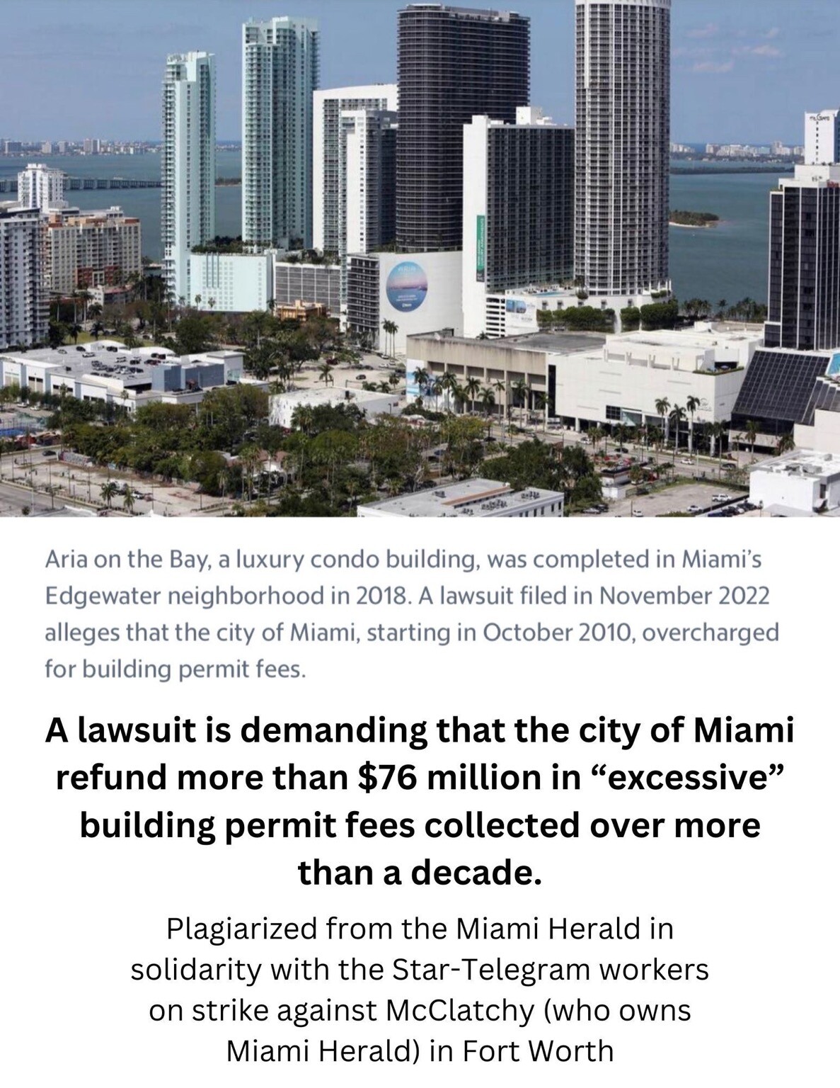 Plagiarizing the Miami Herald in solidarity with workers from Star-Telegram on strike against McClatchy (the parent company of the Miami Herald) in Fort Worth: