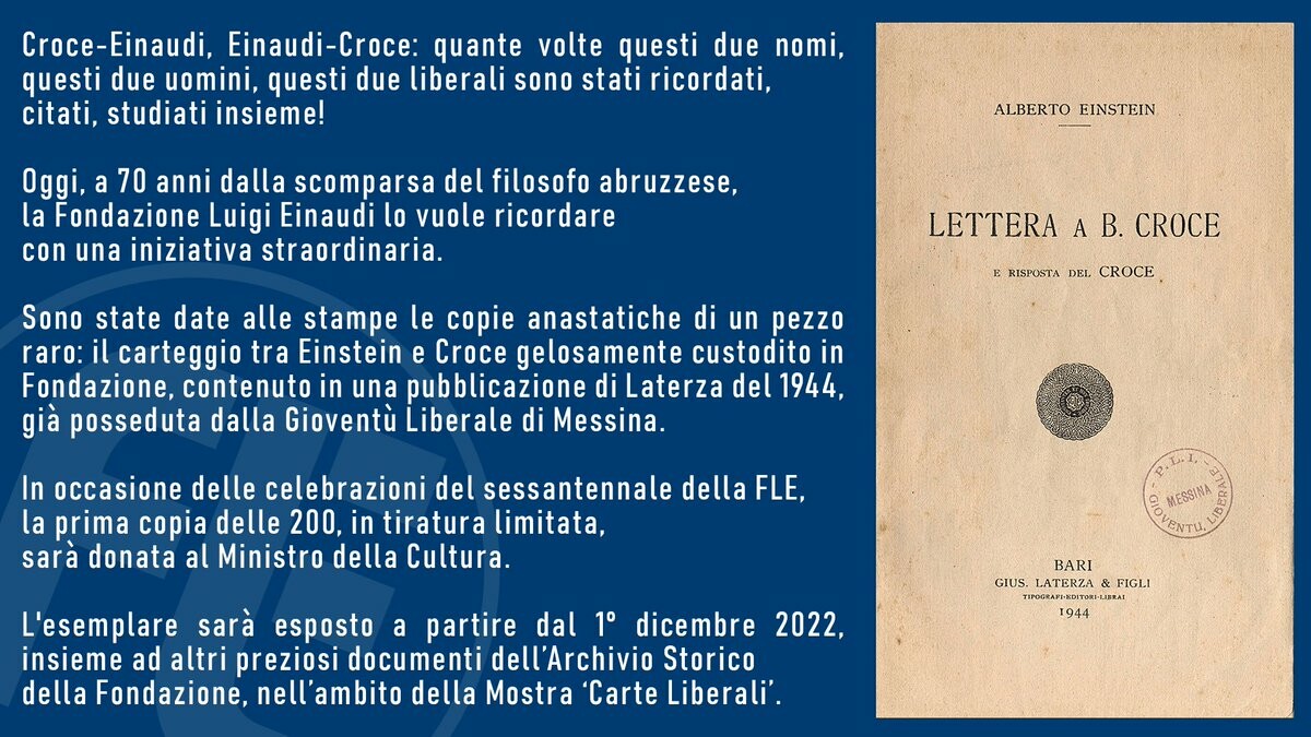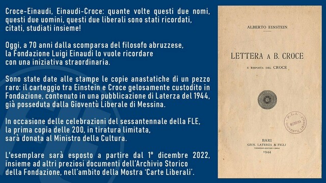 "Benedetto Croce è l'italiano della verità e della libertà che si oppone alla tracotanza del potere."