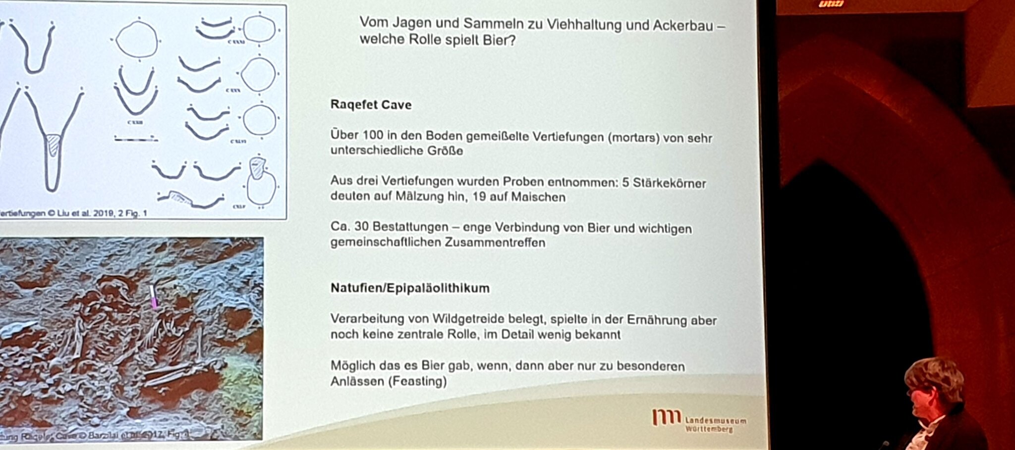 z.B. Dr. F.Haack "Von Anfang an #Bier? Vor 13000 Jahren bei halbnomadischen Jägern/Sammeln im Karmelgebirge (Levante):