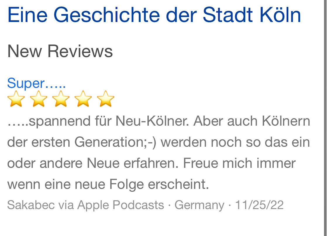 😍 Darüber freue ich mich immer wieder. Es ist der schnellste, einfachste Weg den Algorithmen der Podcast-Plattformen mitzuteilen, dass dieser Podcast lohnenswert ist. 😊