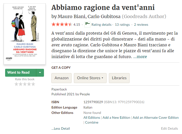 Il dilemma dell'editoria italiana: meglio libri che prendono più di quattro stelle su Goodreads ma leggono in pochi o un libro che vale di meno ma circola di più compiacendo il pubblico? Per togliere #people dal dubbio si può leggere e far leggere il libro che ho fatto con #Biani