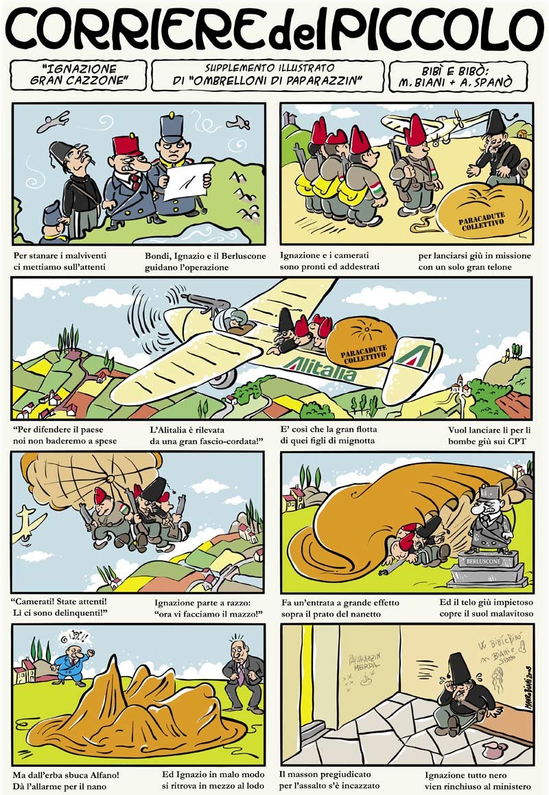 Un omaggio vintage alla seconda carica dello stato: "Ignazione gran cazzone", parodia delle avventure di "Marmittone" sul corrierino. Testi miei, matite di Mauro #Biani. Pubblicata sul supplemento satirico "Paparazzin" del quotidiano "Liberazione", nell'inserto estivo del 2008.