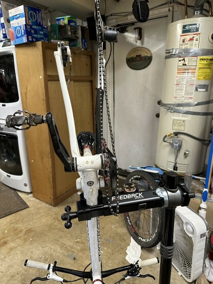 Brake pads replaced. New Feedback Sports work stand made this job a cakewalk.