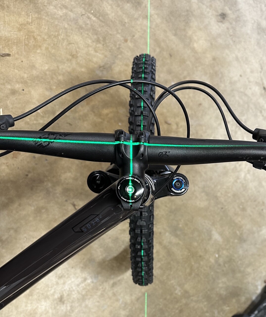 After changing the stack height on my new bike , I thought a laser X level might do the trick for getting the bars back perpendicular to the wheel.