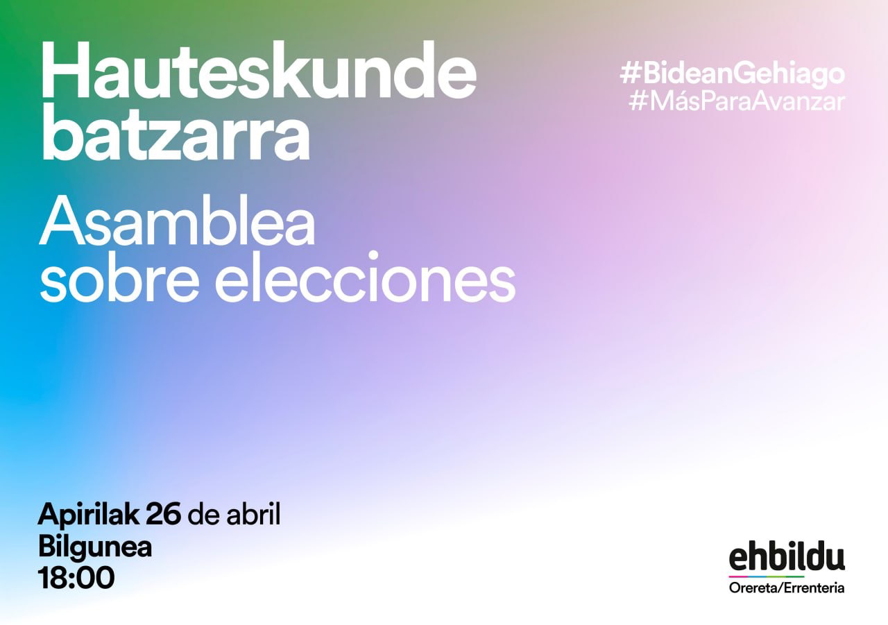 Maiatzaren 28an inoiz baino gehiago izateko zuen guztion laguntza behar dugu. Hurrengo asteazkenean hauteskundeen erronka lantzeko batzar berezia egingo dugu.