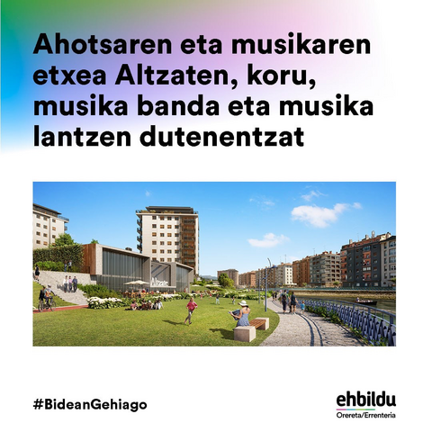 Kantuarekin eta musikarekin lotuta herrian ditugun eragileentzako espazio partekatua martxan jarriko dugu Altzaten aurreikusita dagoen partzela eraikigarrian. Espazioaren diseinua bera eragileekin batera egingo dugu.