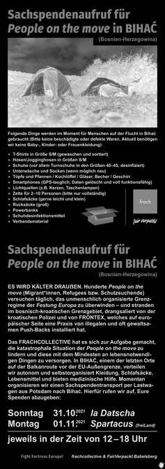 Am 30.10. & 1.11. starten wir eine Wintersammelaktion für Menschen die in #BIHAĆ vor der #FestungEuropa stehen.