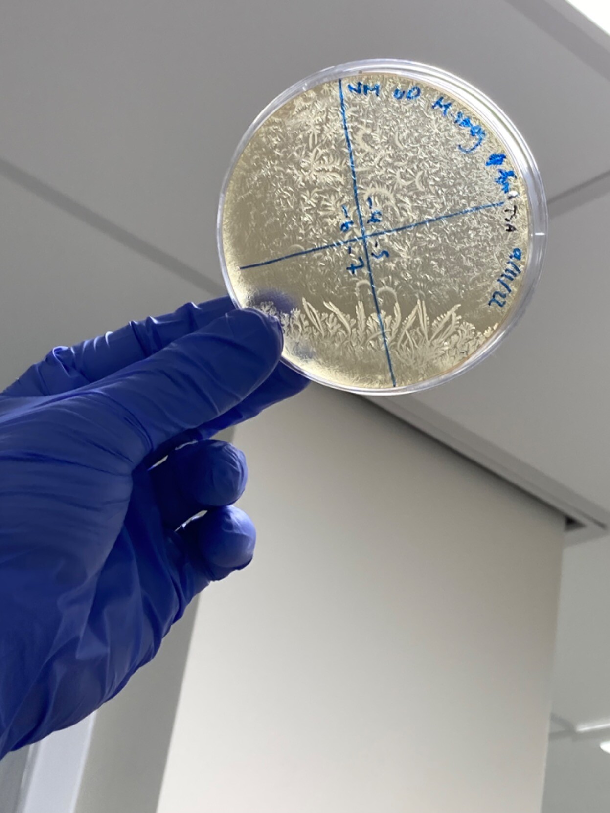 My bacterial CFU plates weren’t taken out of the incubator over the weekend but it made a cool crystal formation #BioArt