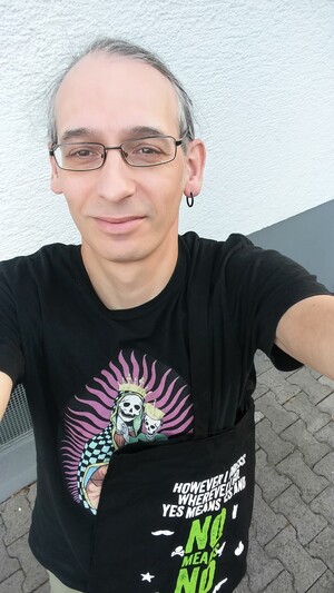 Ich, ganz stolz mit meinem neuen Einkaufsbeutel "No Means No" von #Blackmosquito.
