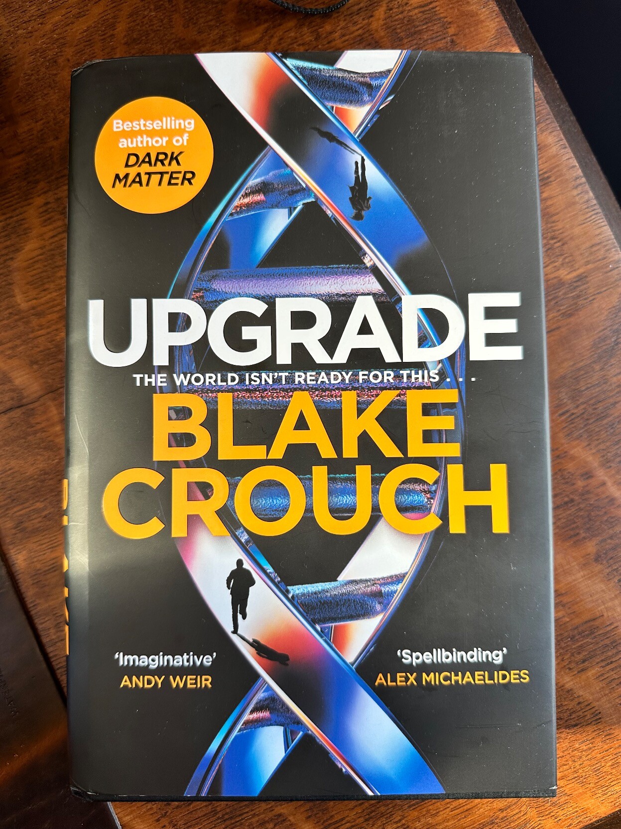 Currently reading: „Upgrade“ by Blake Crouch. Interesting novel about changing the human DNA 🧬 to help our survival, but of course it does not go as planned.