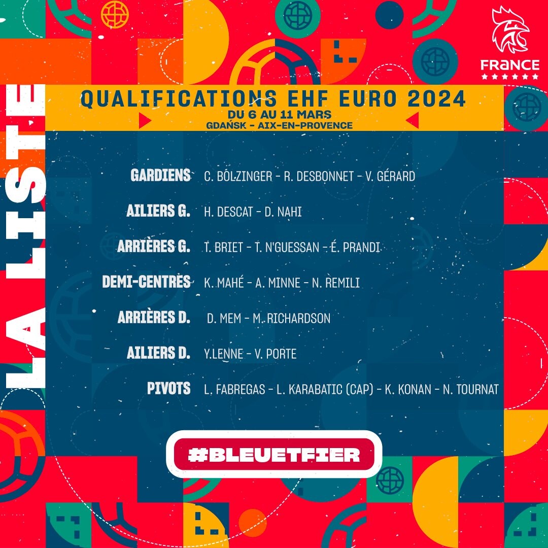 L'article 🗞️ : https://www.ffhandball.fr/fr/articles/articles-publies/ehf-euro-2024-qualifications-la-liste-des-joueurs-convoques