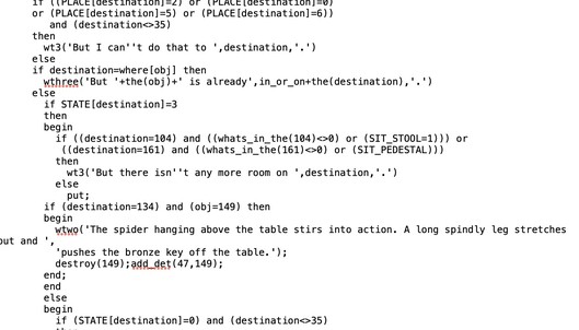 Which resulted in me digging around for old source code for that and some adventure games I wrote. Hard to believe I wrote this code now...
