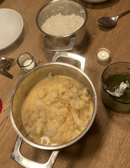 @Thalestria Hier gab es #Blumenkohl Kichererbsen-Curry mit Reis und Korianderöl