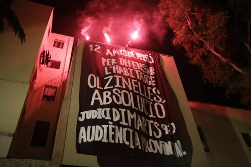 #HABITATGE | Despleguen una pancarta a @caladona@twitter.com per demanar l'absolució de dos activistes que van participar en la defensa d’un bloc ocupat al barri de la #Bordeta. Fiscalia els acusa de desordres públics i atemptat i demana sis anys de presó https://directa.cat/jutgen-dos-activistes-per-lhabitatge-amb-peticions-de-sis-anys-de-preso/ 📸 @_ittos_@twitter.com