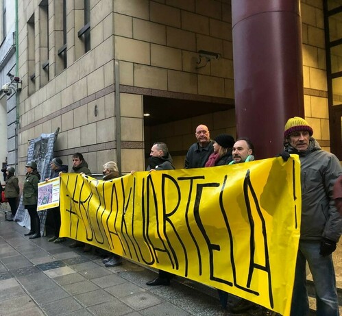 Hoy, 24 de enero, se ha celebrado el juicio en el juzgado de lo penal número 5 de Bilbao contra dos activistas del Grupo Antimilitarista de Bilbao (KEM-MOC) por “intentar derribar” el gobierno militar de Bilbao en una acción directa noviolenta que se realizó el 18 de diciembre de 2021 en el marco de la campaña #botakuartela.