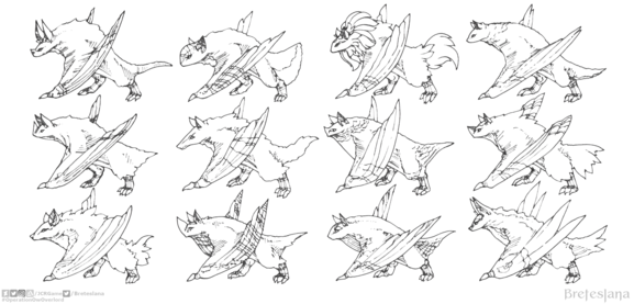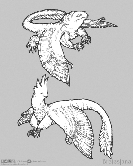 Some fluffy flying frenly boyos. Probably as close as I'll get to having dragons. One way #Breteslana will depart from garden variety fantasy: The wildlife are just animals. "Monsters" are all tied to cosmic shenanigans. #OperationOwOverlord #fantasy #drawing #anime #conceptart