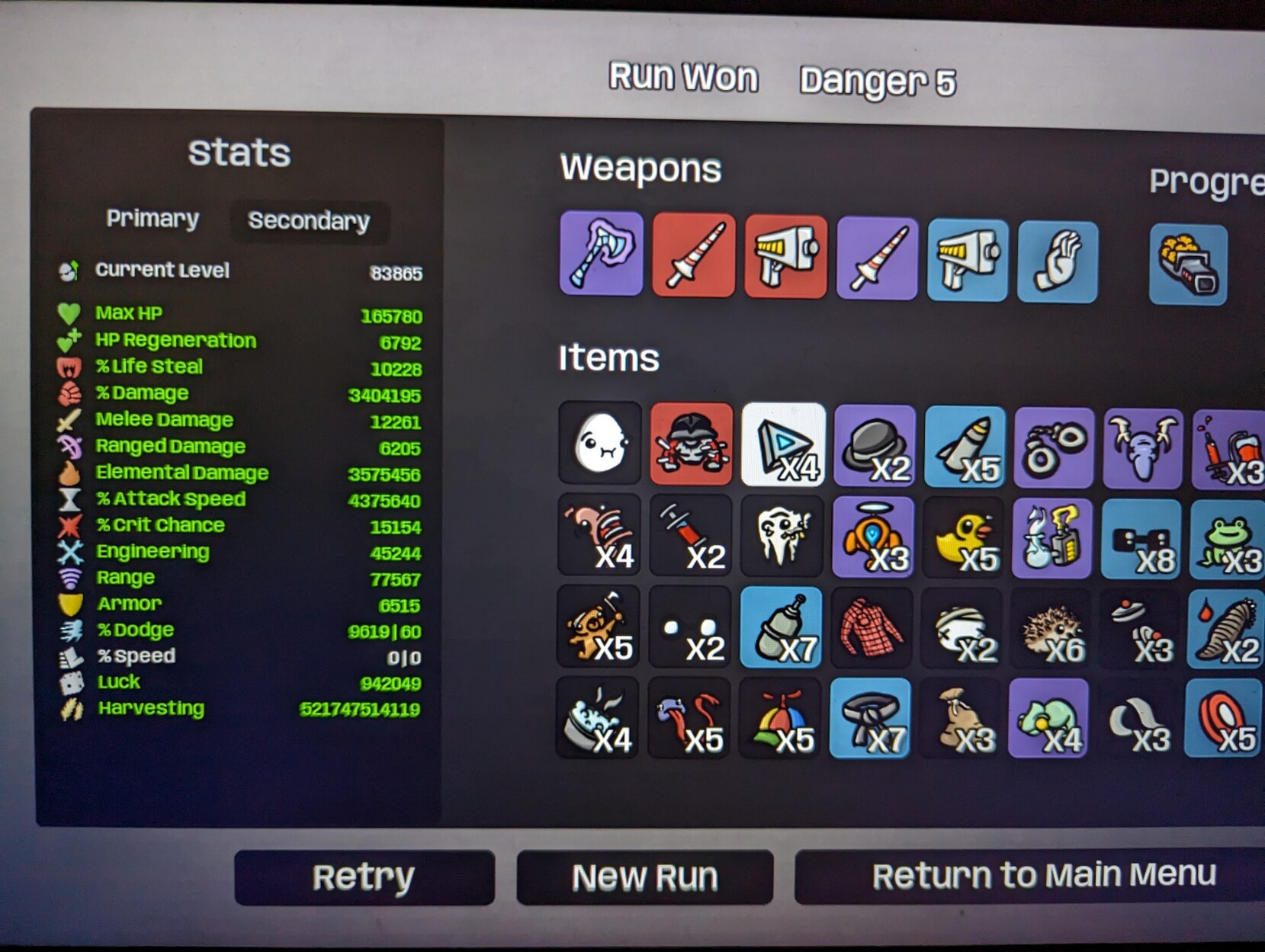 Spiele seit Wochen #Brotato und heute zum ersten Mal endlich einen Durchlauf geschafft. Bei anderen sieht das immer so leicht aus.