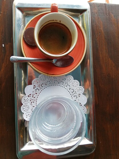 El café expresso lo sirven muy lindo hasta me sentí como cuando vivía x Italia 😍 está chiquito pero todo delicioso 😋