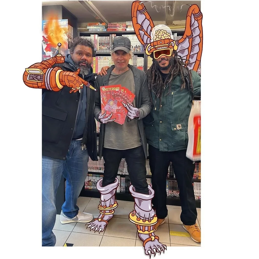 There's only 15 issues of #CHADinAMSTERDAM № 01 left (from a print run of 2000) and they're signed by myself and my brother and № 01 cover artist Delicious Brains (far right). Get them while you can over at Henk Comics (from Alfred, in the middle) in #Amsterdam!!! https://www.comics.nl