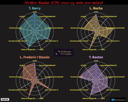 As everyone is busy watching WC, let me sneak in radars for 4 best goal scorers from Challengers Pro League (#CPL) 22-23